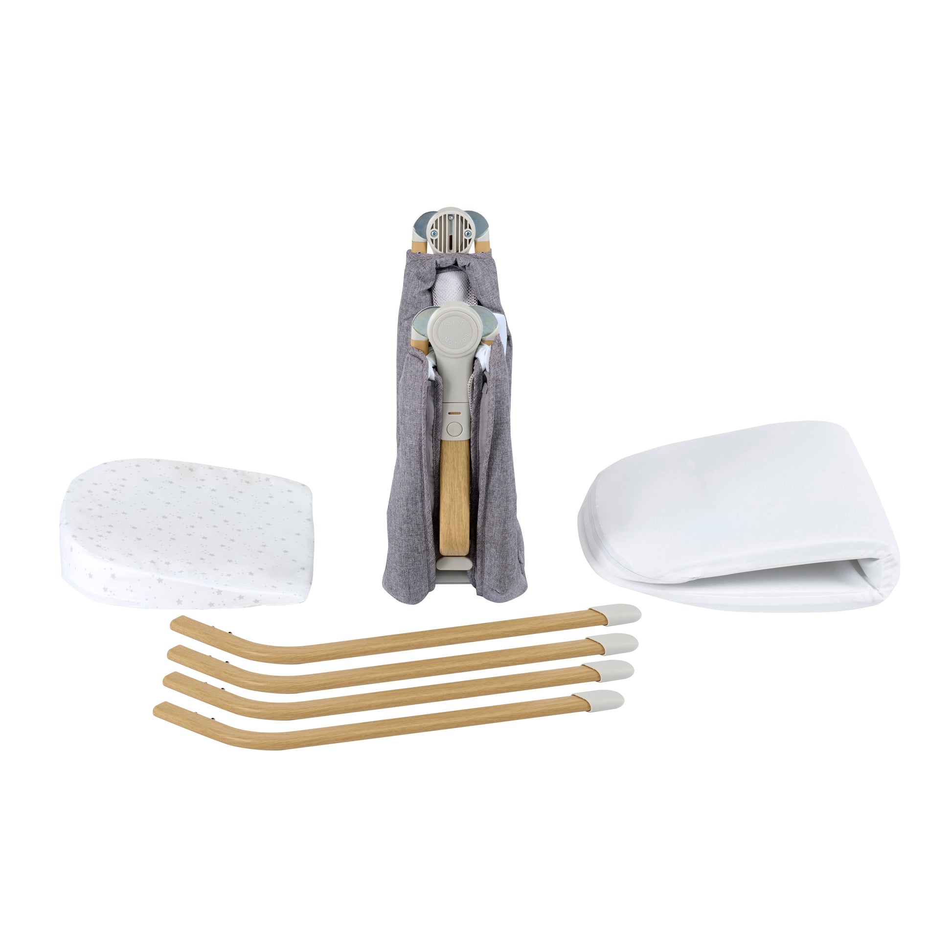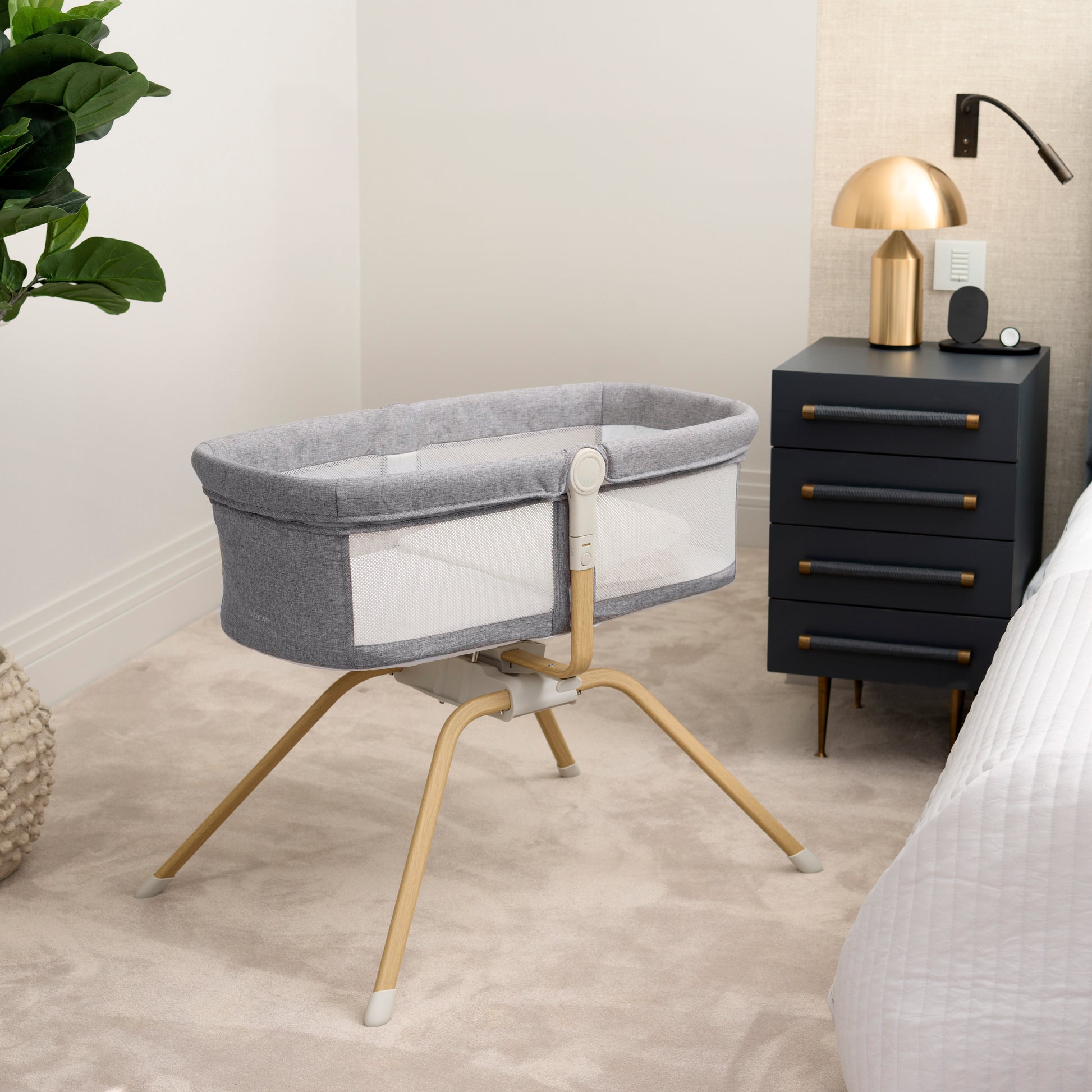 It looks super stylish and fits the aesthetics of a modern home. Remove the slim legs and fold the bassinet, this crib can be dismantled or assembled in 1 minute, no tools needed. All fits in a compact travel bag so you can take it with you for overnight stays as a holiday travel crib.