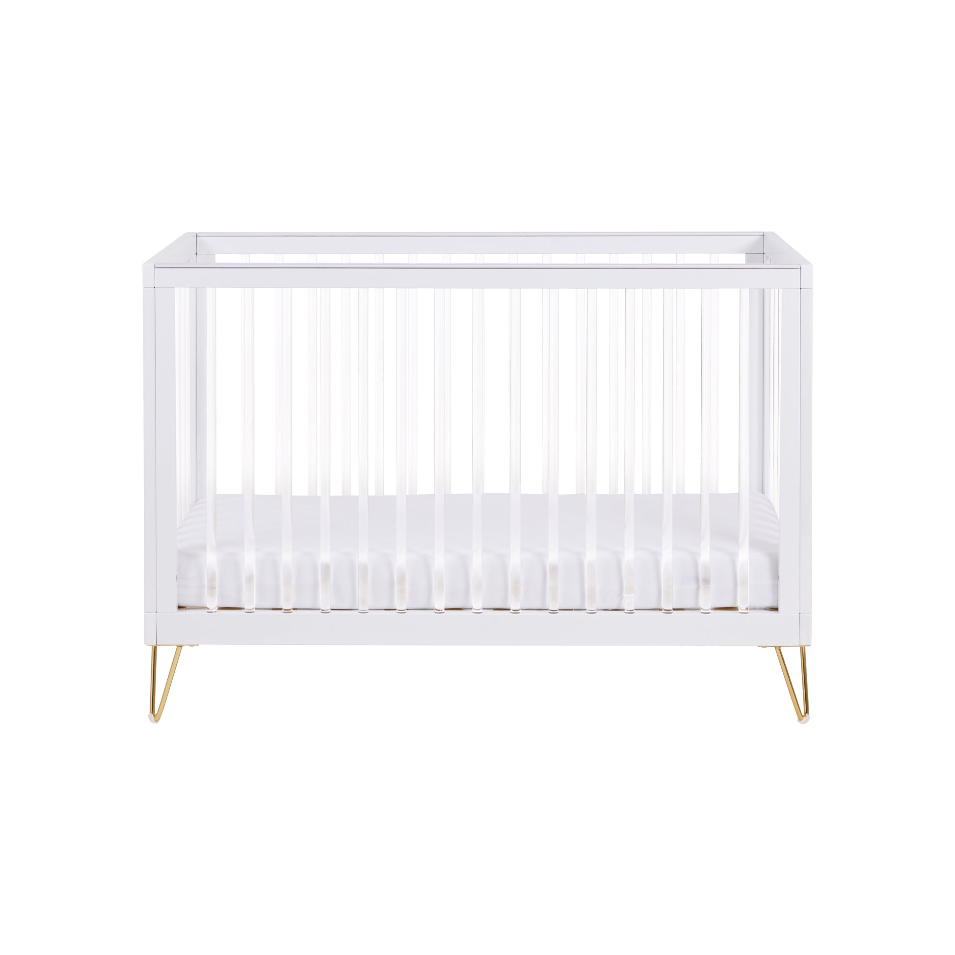 The 100% recyclable, non-toxic acrylic provides an airy, open feel that allows full visibility of your little one from any angle. The Scandi-inspired cot bed has been stylishly designed with retro hairpin legs.