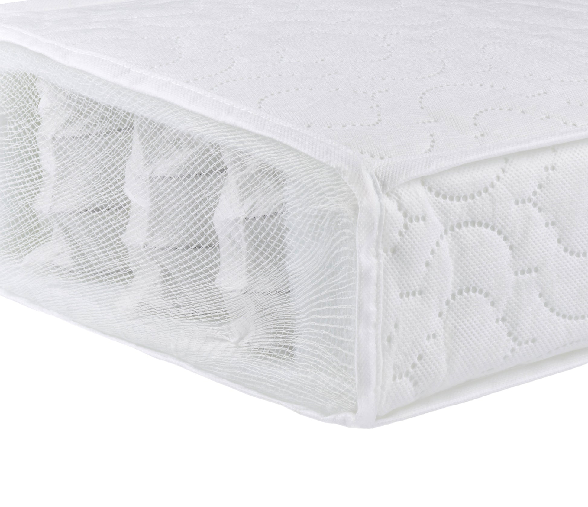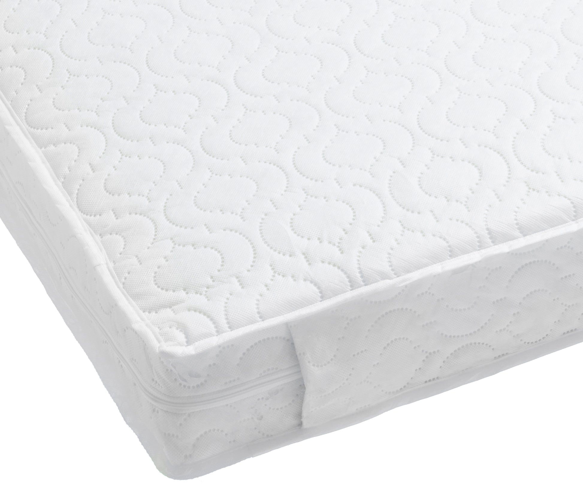 Babymore Pocket Spring Mattress is chemical free, British made, 10cm thick, It offers the best support and comfort to ensure natural sleep posture, as well as ventilation and hygiene benefits. With superior grade of dent resistant nursery fibre, each spring is sewn with its own self contained micro pocket, each individual spring moves freely to contour precise sleep position. Mattress core encased in stocking net with an adjustable waterproof membrane on top, for any required position i.e. The Feet To Foot. The mattress has a removable fully bound & quilted cover incorporates a side zip allow easy removal for washing. Cover made of BabyTec fabric, which is specially developed, hypo allergenic, water resistant and wipe clean surface, fully breathable and washable at 60 degree.