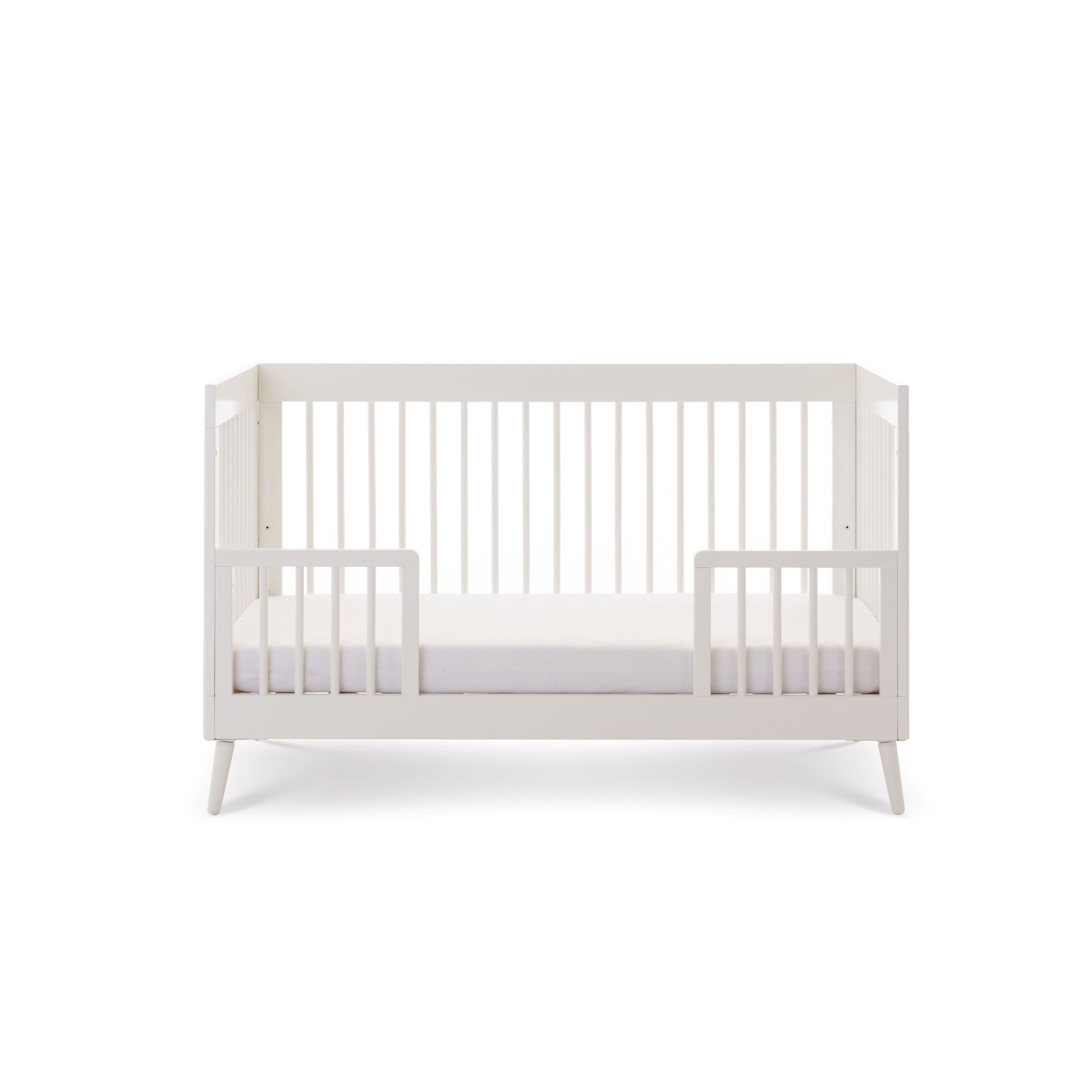* Side is removable for effortless transformation into a toddler bed